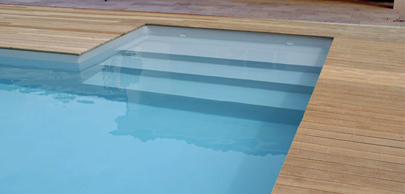 Différents types d'escaliers peuvent être installés dans votre petite piscine Aqua 10